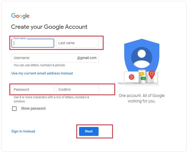 फिर आप First Name में आपने पहला नाम टाइप करे जैसे की अगर आपका नाम अजीत कुमार है तो आप First Name में अजीत टाइप करें और Last Name में आपने लास्ट का नाम जैसे की कुमार टाइप करें करें। उसके बाद आप यूजरनाम में आपने नाम टाइप करें।
