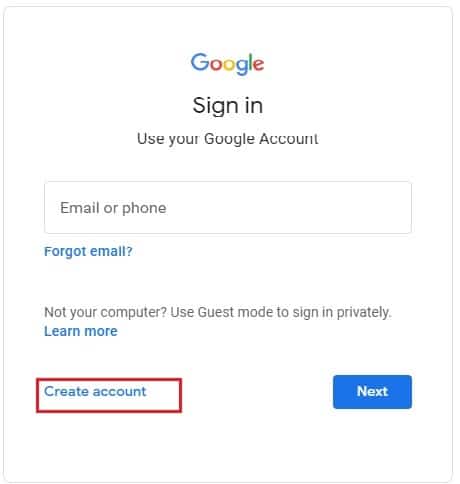ब्लॉगर से वेबसाइट बनाने के लिए सबसे पहले आपके पास एक ईमेल आईडी होना चाहिए, अगर आपके पास ईमेल आईडी नहीं है तो आप न्यू ईमेल आईडी बना ले। न्यू ईमेल आईडी बनाने के लिए यहाँ पे Create Account क्लिक करे।